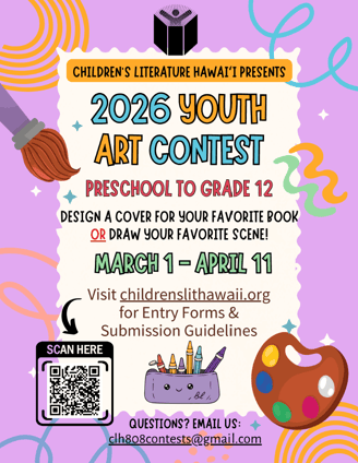 Disclaimer: All entries are subject to review and approval. Children's Literature Hawai'i reserves the right to decline entries that do not meet the contest guidelines.